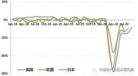 圖3:美國、歐盟服裝零售額同比增長情況