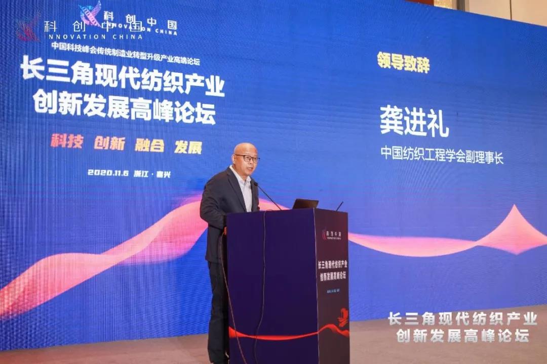 中國紡織工程學會副理事長龔進禮在致辭中表示,我國紡織工業(yè)自改革開放以來由小到大、由大到強,已率先建成全世界最完善的全產(chǎn)業(yè)鏈現(xiàn)代化制造體系。目前我國紡織業(yè)正處于自動化、智能化和信息化深度融合應用的關鍵時期,也是科技創(chuàng)新實現(xiàn)紡織新舊動能轉(zhuǎn)換的重要時期。他提出,在這個重要時間點召開長三角現(xiàn)代紡織產(chǎn)業(yè)創(chuàng)新發(fā)展高峰論壇,將正式拉開跨領域、跨行業(yè)、跨地區(qū)多家全國學會科技服務團為“科創(chuàng)中國”試點城市嘉興市進行科技服務的序幕,希望各領域?qū)<覍W者和廣大紡織科技工作者充分發(fā)揮科學技術進步在創(chuàng)新型城市建設的重大作用,助力嘉興地區(qū)傳統(tǒng)紡織產(chǎn)業(yè)轉(zhuǎn)型升級。