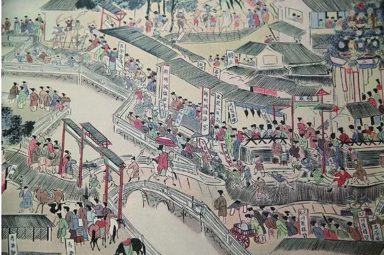 手工織出南京版的“清明上河圖”你見過《清明上河圖》,但是你見過“織”出來的“清明上河圖”嗎?在館內(nèi),現(xiàn)場展示了一幅“織”出來的南京版“清明上河圖”--《南都繁會圖》。該作品全圖長達(dá)3.5米,共繪制有109個商家的招牌、幌子和匾額,以及侍衛(wèi)、戲子、漁夫、郵差、商人等1000多種不同的職業(yè)身份,反映了當(dāng)年秦淮河兩岸的繁盛景象。圖中所繪“南市街”“北市街”均屬南北走向街區(qū),即如今的雨花路、東西干長巷,反映了南京市井商業(yè)貿(mào)易的繁榮。