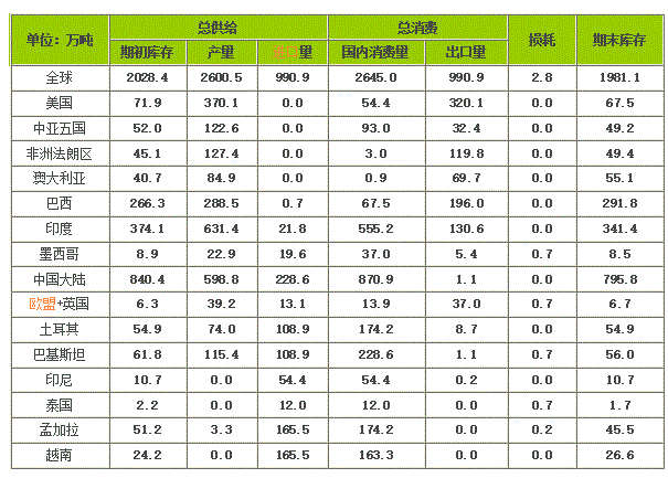 USDA 2021年5月全球棉花供求預測(2021/2022年度)