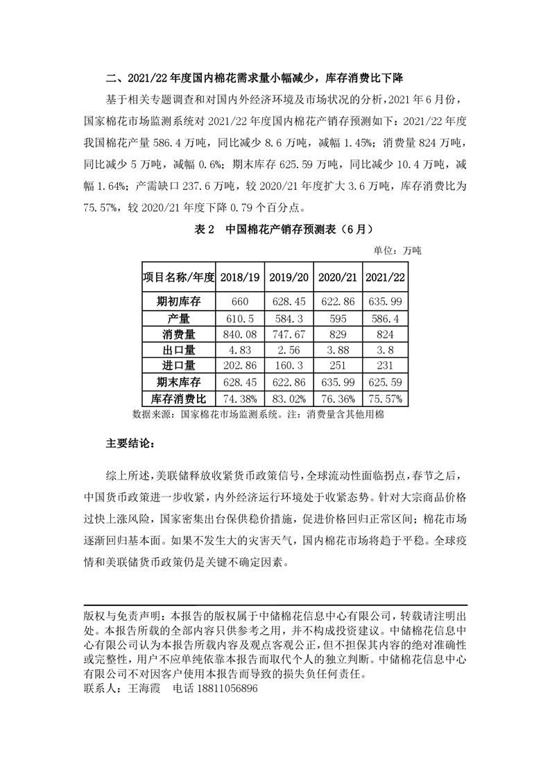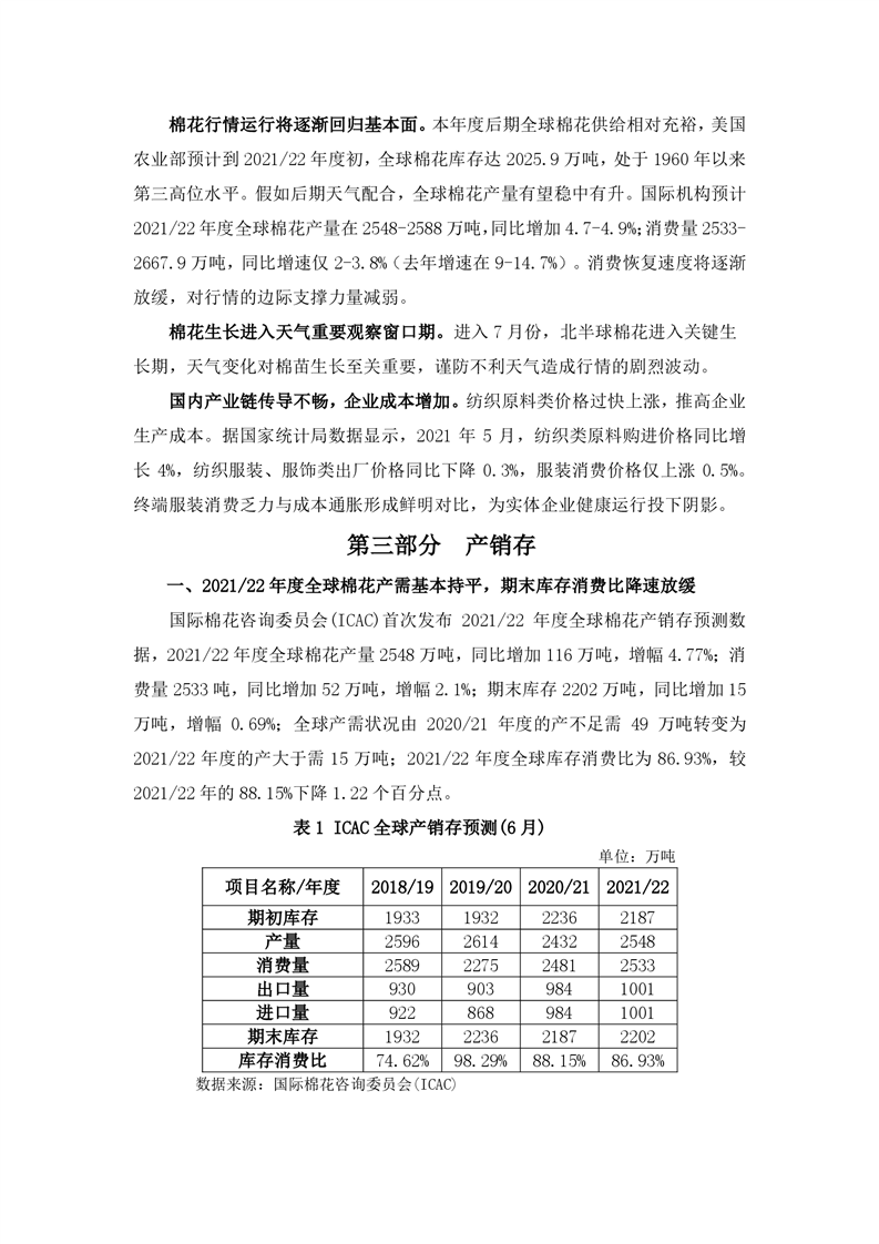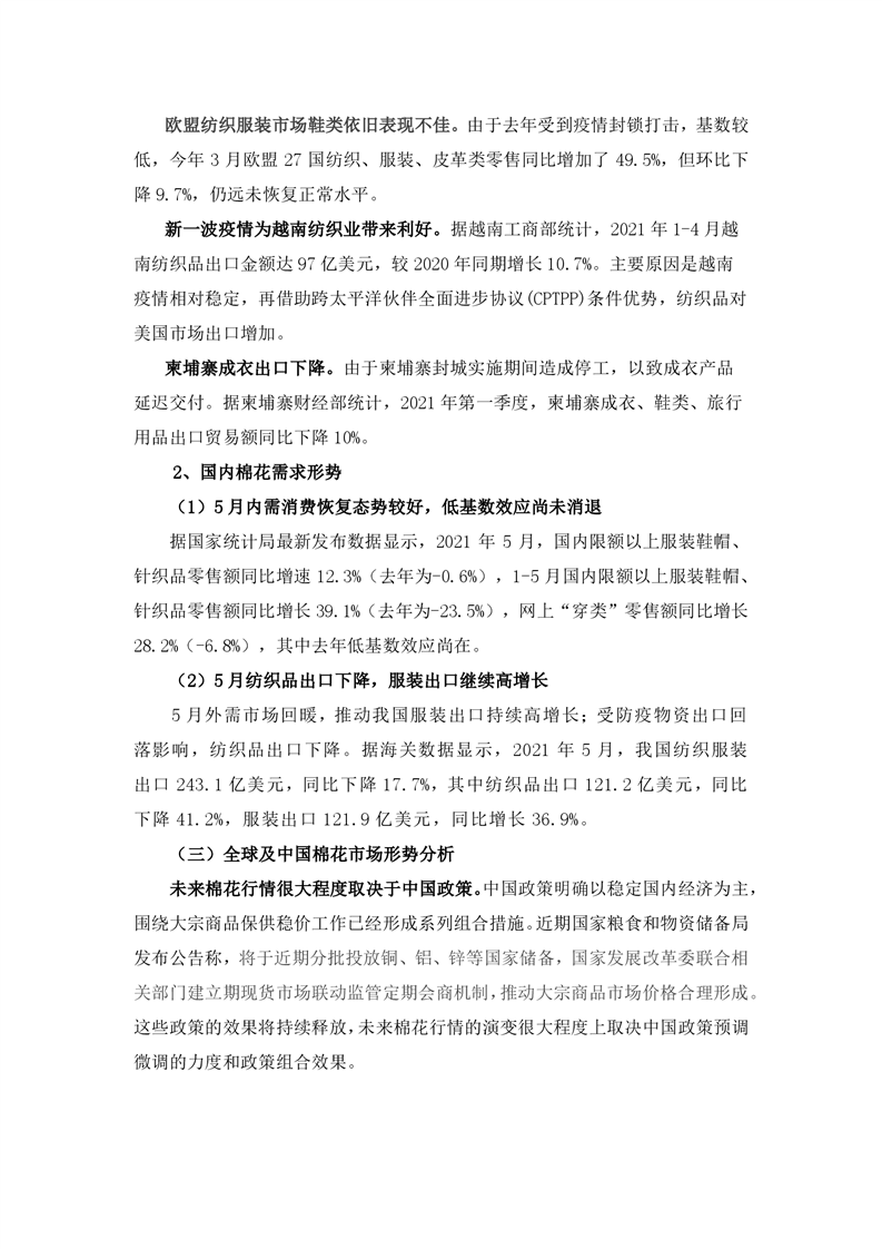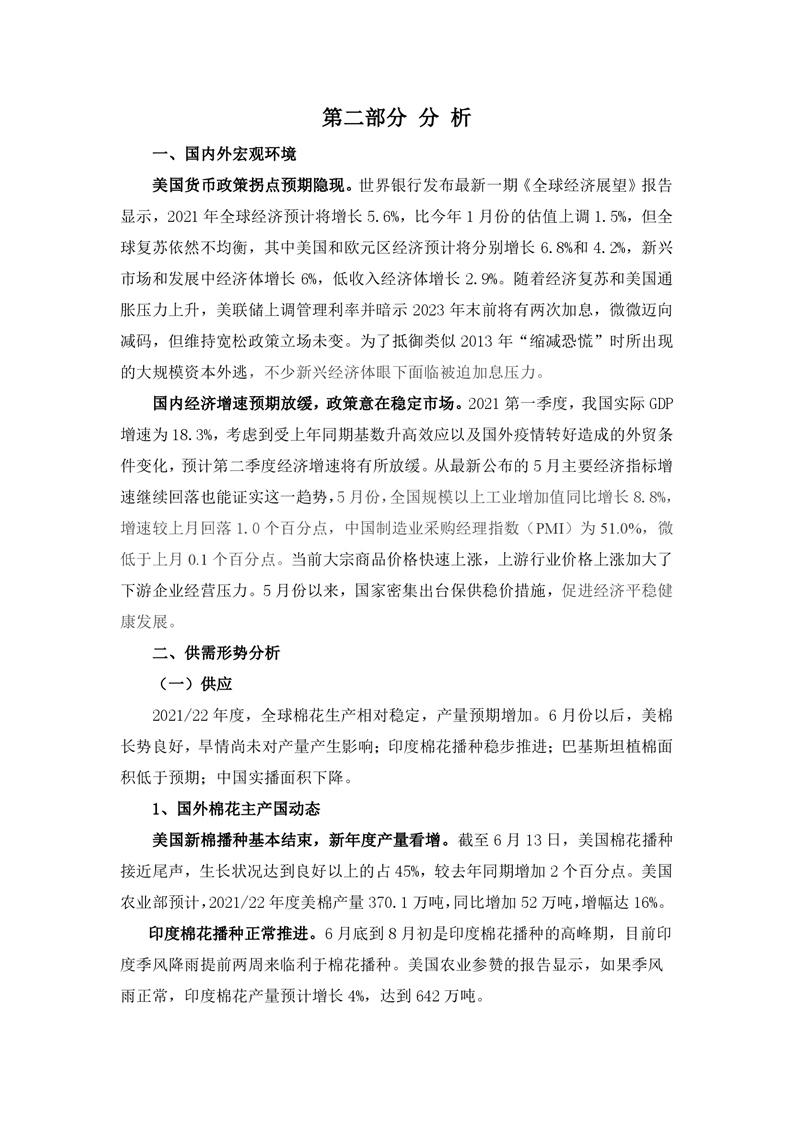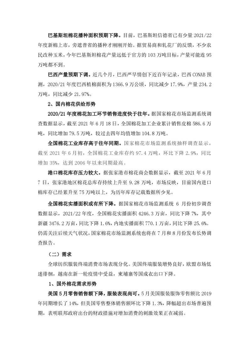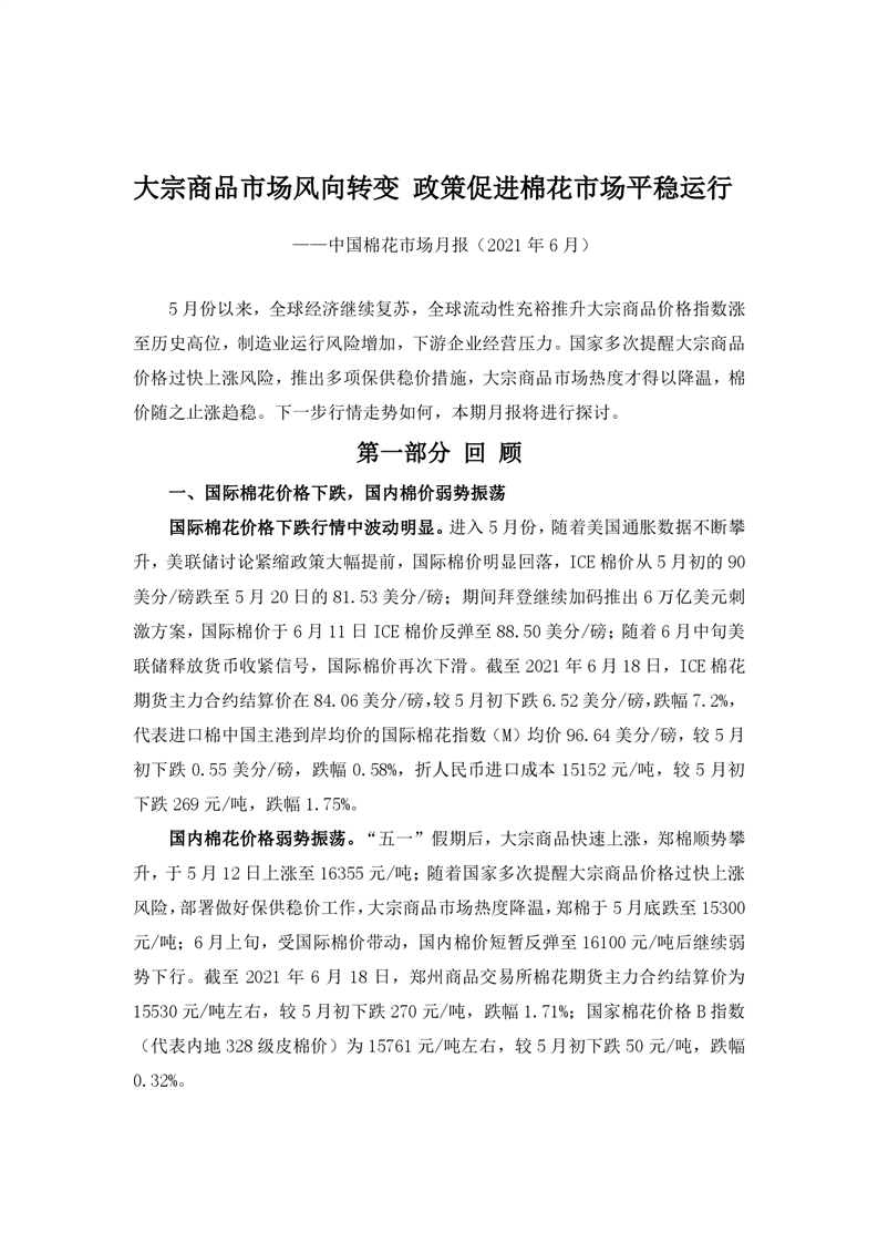 中國(guó)棉花市場(chǎng)月報(bào)(2021年6月)