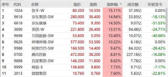 恒生科技指數(shù)(6436.24, 414.97, 6.89%)暴漲7%,快手、京東集團漲15%,美團漲超13%,嗶哩嗶哩漲超10%,阿里巴巴漲超9%,騰訊漲8.8%。世界上最大的指數(shù)提供商,摩根士丹利資本國際公司(MSCI)最近認為,中國股市在恐慌過后將重回高點。