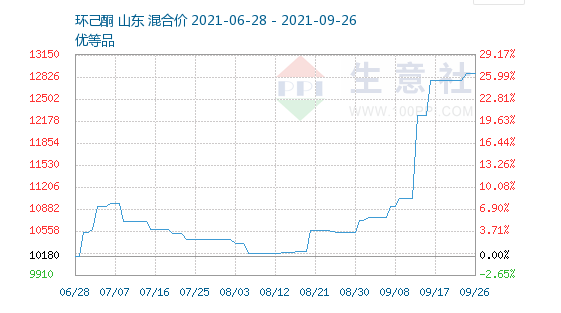 錦綸上游原料環(huán)己酮貨源偏緊,下游化纖需求稍有好轉(zhuǎn),溶劑剛需拿貨,環(huán)己酮市場行情平穩(wěn)運(yùn)行。上周純苯掛牌下調(diào)200元/噸,成本面支撐較弱,環(huán)己酮貨源偏緊,據(jù)生意社數(shù)據(jù)統(tǒng)計(jì)顯示,截止9月26日,國內(nèi)環(huán)己酮市場均價12880元/噸。下游需求稍有好轉(zhuǎn),預(yù)計(jì)短期環(huán)己酮橫盤整理為主。