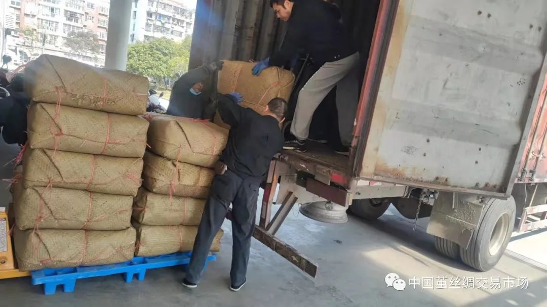 近日,向印度方向生絲出口較為忙碌。下圖為本周中國(guó)繭絲綢交易嘉興本部二期大樓的生絲出口打包出貨現(xiàn)場(chǎng)。