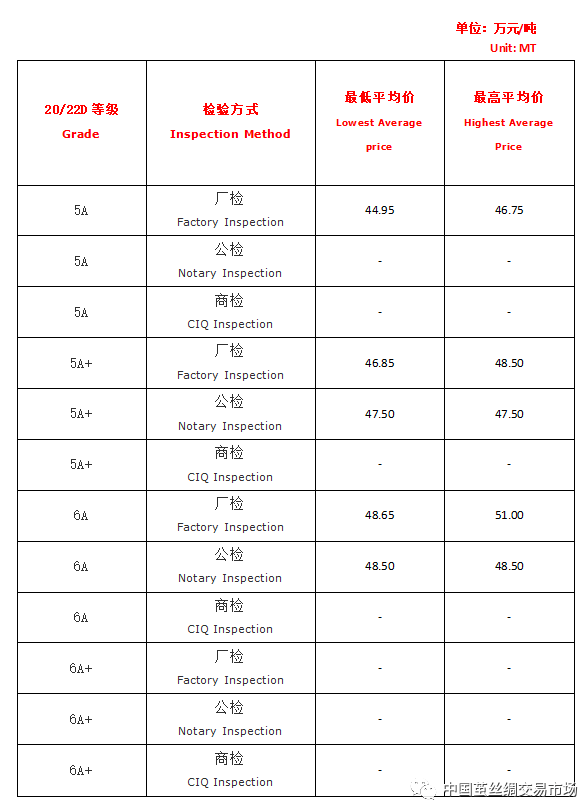 【本周高品位生絲協(xié)作單位成交價(jià)格區(qū)間(試運(yùn)行)】