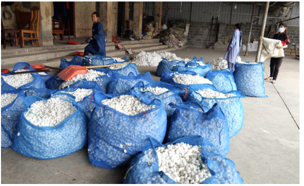 “今年的蠶繭質(zhì)量不錯(cuò),產(chǎn)量也可以,一天大概收五千多斤,起碼能收到月底。在我這個(gè)繭站收購(gòu)的蠶繭,直接拉到忻城縣玉蠶繅絲廠繅絲?!毙贸强h玉蠶繅絲廠收購(gòu)商盤(pán)老板介紹說(shuō)。