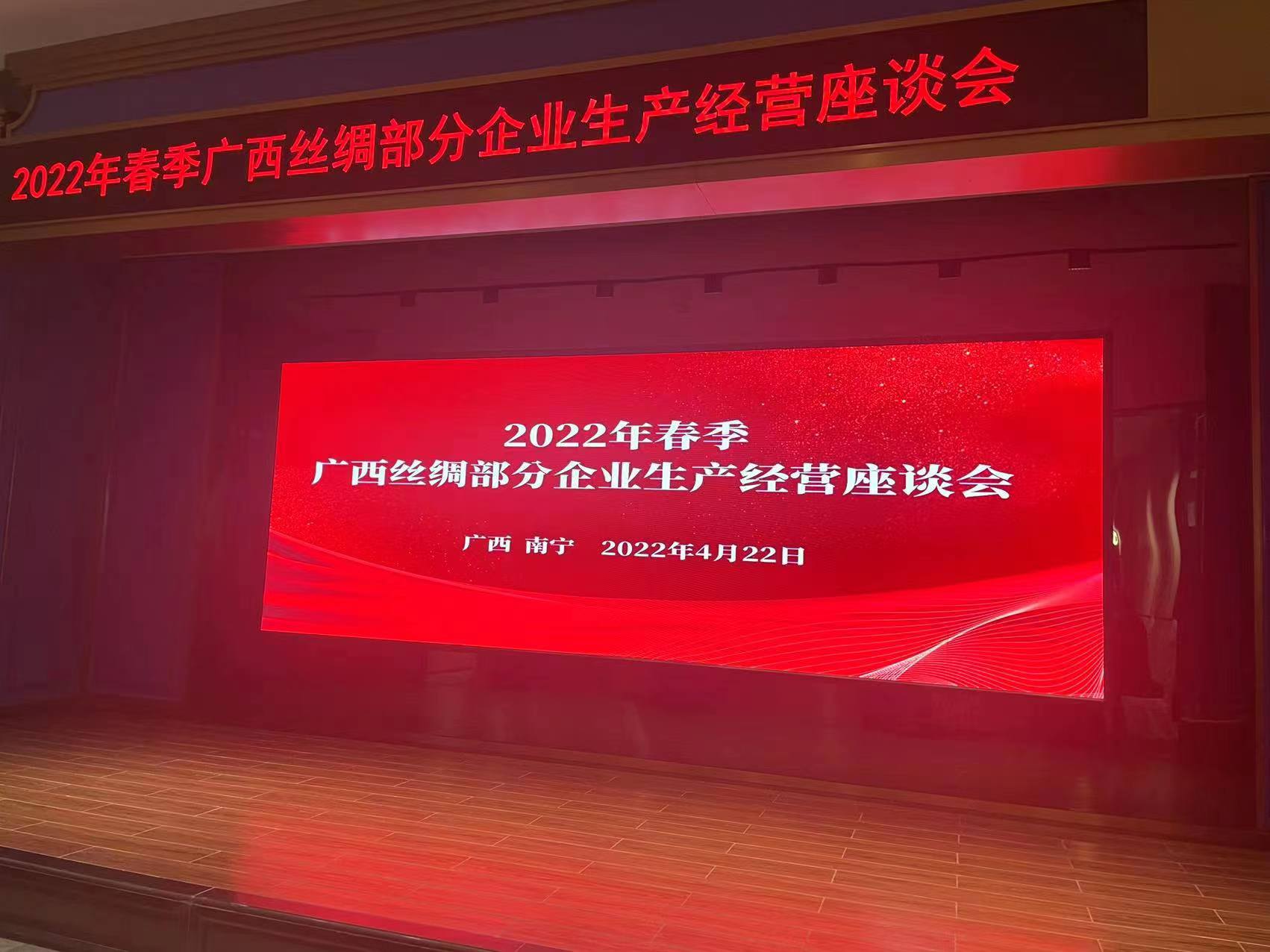 4月22日下午,廣西繭絲綢行業(yè)協(xié)會(huì)在南寧市召開(kāi) 2022年春季廣西絲綢部分企業(yè)生產(chǎn)經(jīng)菅座談會(huì)。有關(guān)部門(mén)領(lǐng)導(dǎo)、協(xié)會(huì)領(lǐng)導(dǎo)和部分絲綢企業(yè)負(fù)責(zé)人等近40人參加了此次會(huì)議。廣西自治區(qū)繭絲辦領(lǐng)導(dǎo)楊富剛處長(zhǎng)、梁維佳工程師、廣西農(nóng)業(yè)信貸融資擔(dān)保有限公司覃昱部長(zhǎng)出席會(huì)議。會(huì)議由協(xié)會(huì)賴(lài)以軍會(huì)長(zhǎng)主持。楊富剛處長(zhǎng)發(fā)表講話。