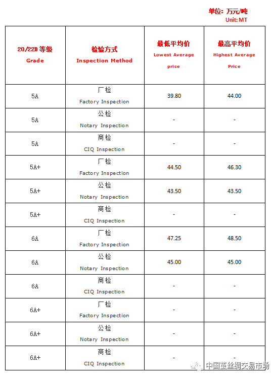 【本周高品位生絲協(xié)作單位成交價(jià)格區(qū)間(試運(yùn)行)】