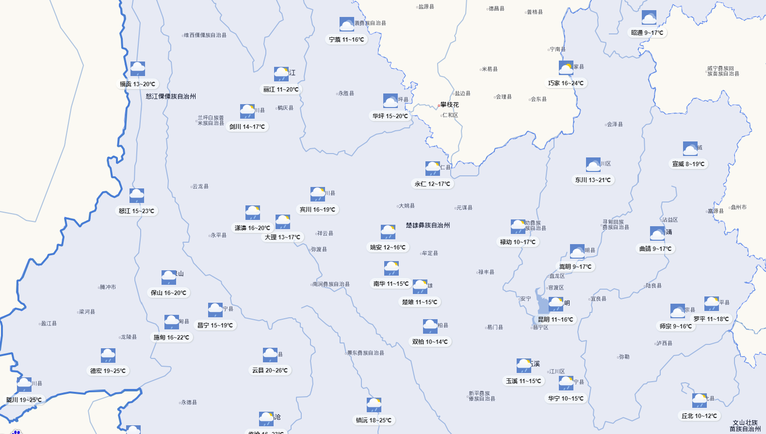 云南主要春繭上市地區(qū)天氣