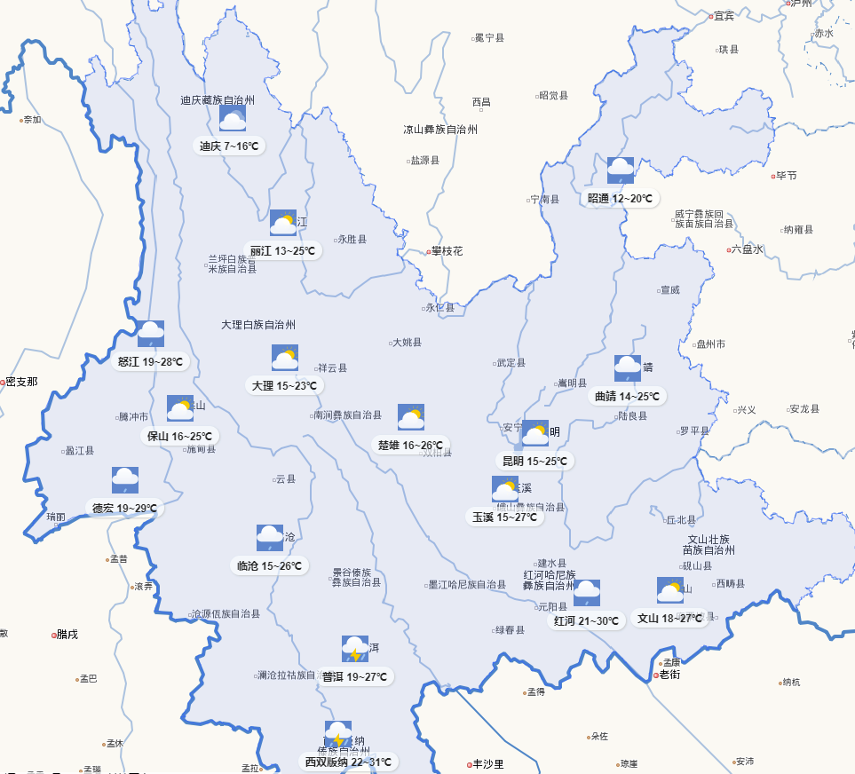 云南主要春繭上市地區(qū)天氣