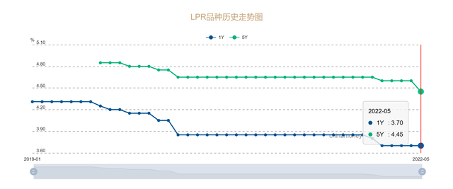 5月20日,中國人民銀行授權全國銀行間同業(yè)拆借中心公布,2022年5月20日貸款市場報價利率(LPR)為:1年期LPR為3.7%,5年期以上LPR為4.45%。以上LPR在下一次發(fā)布LPR之前有效。