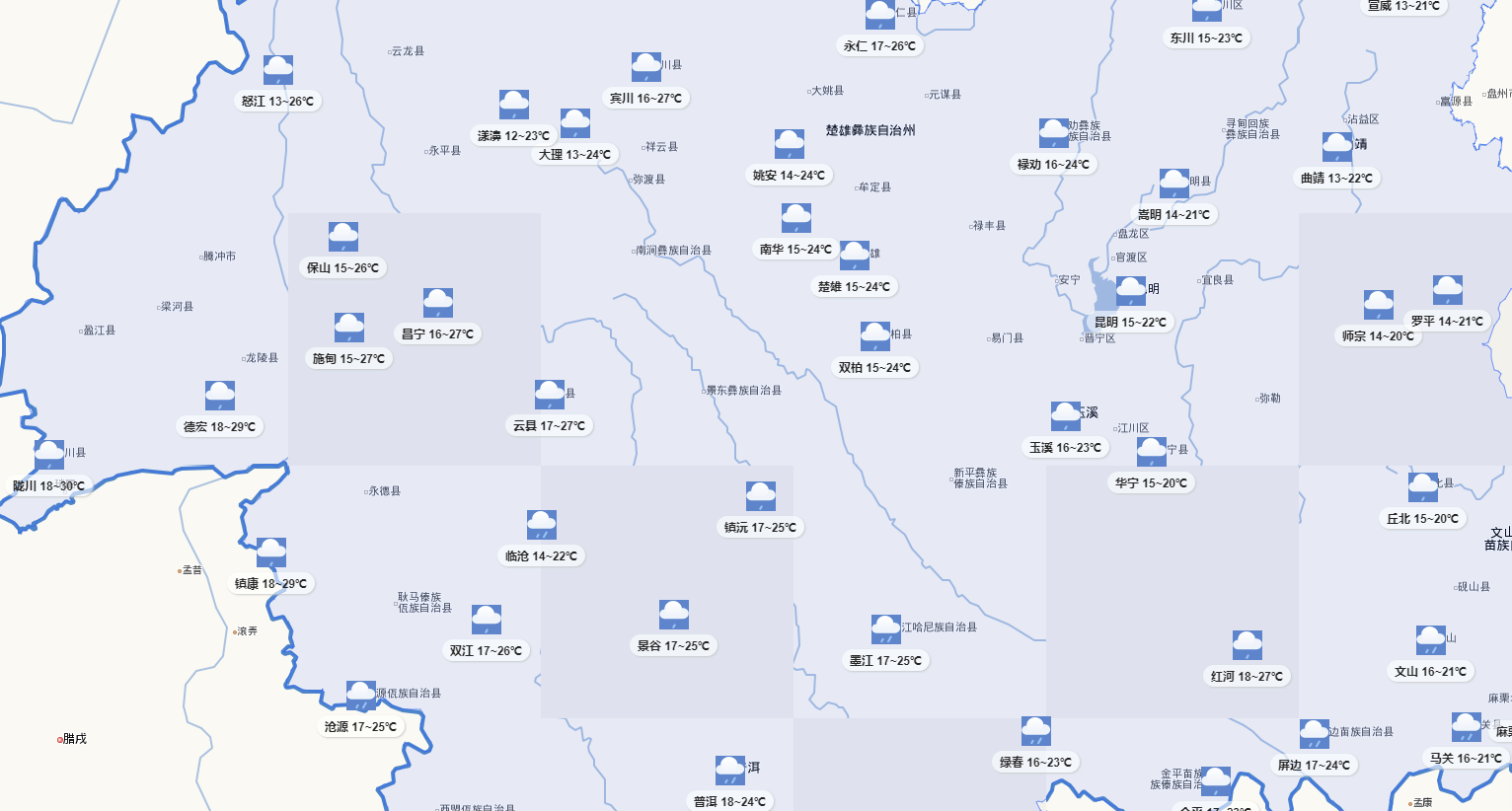 云南主要春繭上市地區(qū)天氣