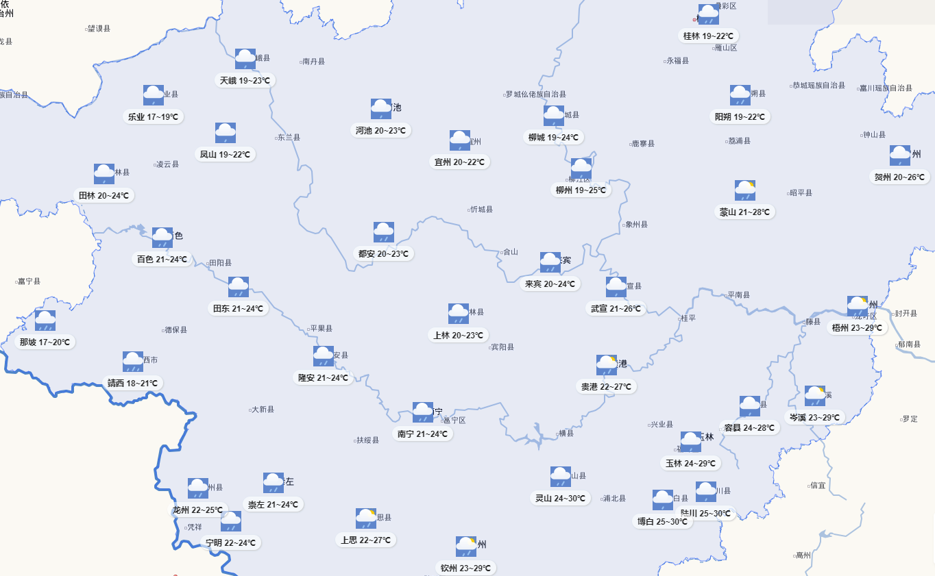 廣西主要春繭上市地區(qū)天氣