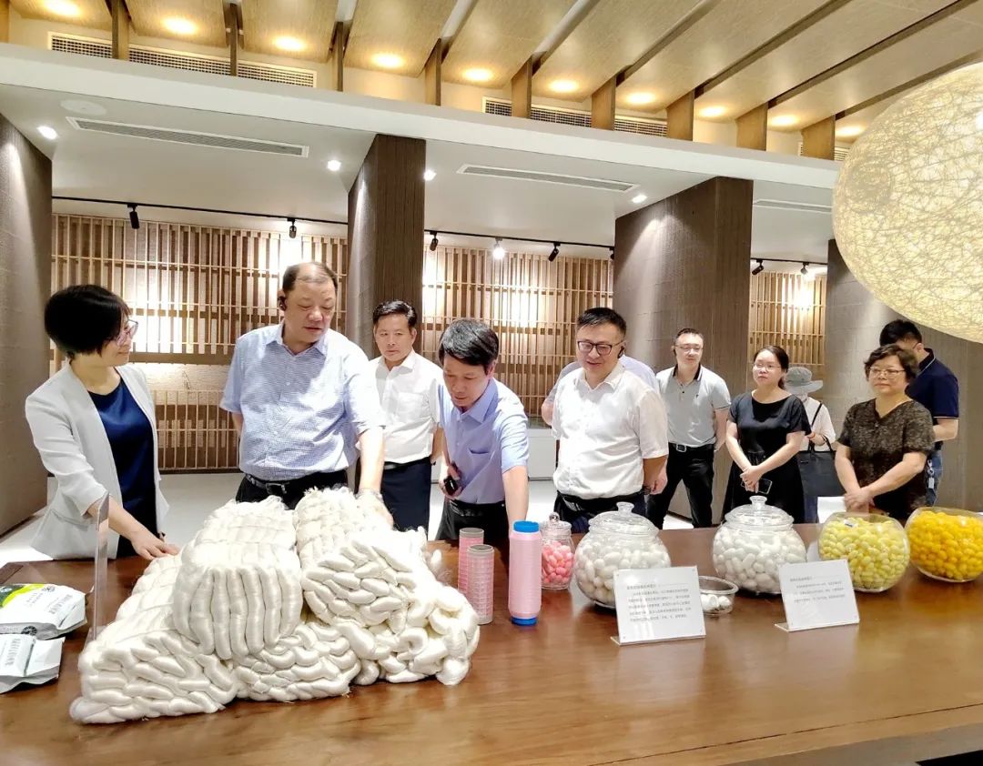 金耀董事長向陳鐵雄副主席一行詳細介紹了企業(yè)數(shù)字化情況。他表示,在各級黨委和政府的關(guān)心支持下,公司在科技創(chuàng)新上取得了一定的成績,并將持續(xù)創(chuàng)新,在高質(zhì)量發(fā)展的道路上真抓實干、行穩(wěn)致遠。當(dāng)前,公司各項生產(chǎn)經(jīng)營工作有序開展,二期年產(chǎn)10萬噸功能性蛋白質(zhì)纖維建設(shè)項目的投產(chǎn)緊鑼密鼓中。