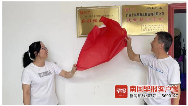 廣西上林縣斯?fàn)栴D絲綢有限公司鄉(xiāng)村就業(yè)工廠揭牌。