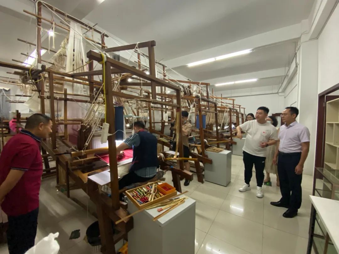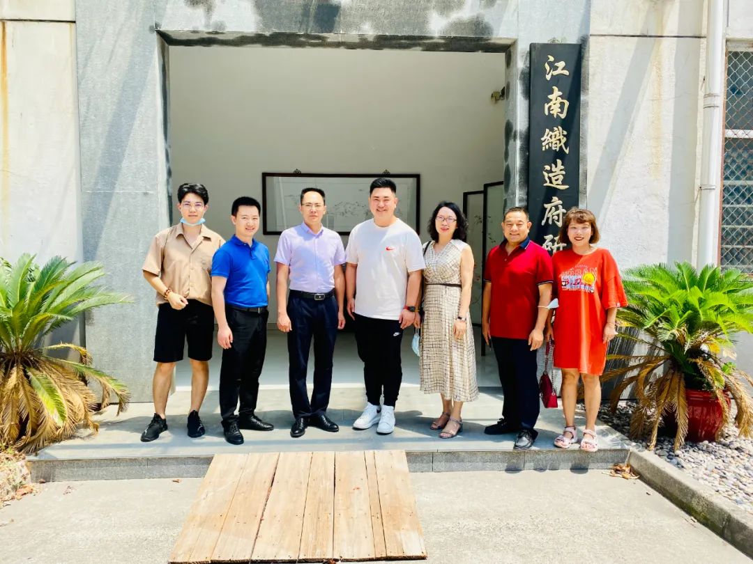 繡娘絲綢總經理徐挺陪同王順輝處長參觀江南織造府研究院的織造、刺繡和文創(chuàng)三大工坊。