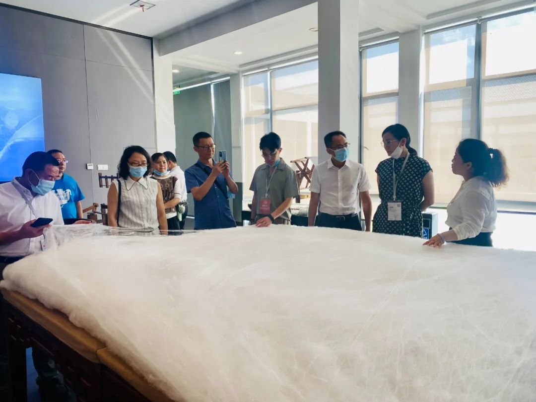 在蠶桑文化展廳,重慶企業(yè)代表團們沉浸式體驗了“桑、蠶、絲、帛”的發(fā)展歷程。從小鎮(zhèn)震澤的絲綢史到太湖雪開創(chuàng)新絲路的發(fā)展;從傳統(tǒng)男耕女織、散戶經營講到現代化機械養(yǎng)蠶。園內以蠶的生命歷程為主線,一步一景,講述了種桑、養(yǎng)蠶、擇繭、繅絲、剝棉、制被、刺繡等傳統(tǒng)工藝。