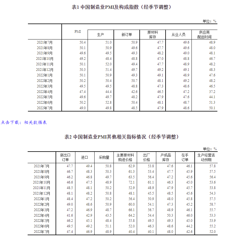 7月份,制造業(yè)采購經(jīng)理指數(shù)(PMI)為49.0%,比上月下降1.2個百分點,位于臨界點以下,制造業(yè)景氣水平有所回落。