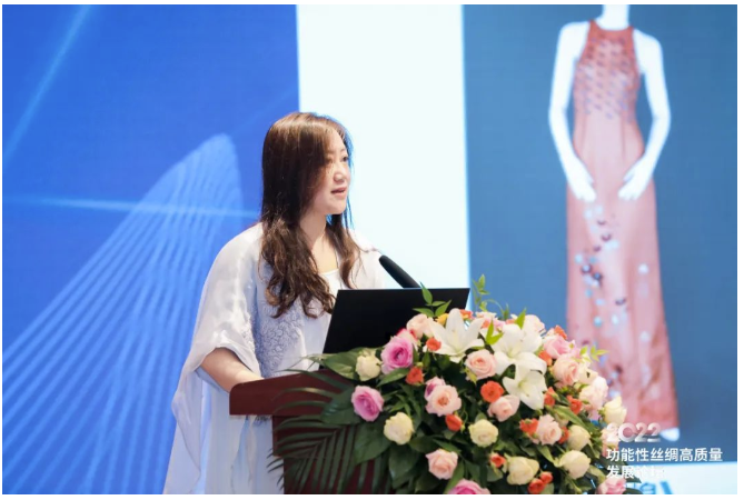 浙江理工大學紡織科學與工程學院(國際絲綢學院)副院長、國際絲綢與絲綢之路研究中心副主任蘇淼作《絲綢—時尚與科技,傳承與未來》報告,從多元文化支撐、密集科技創(chuàng)新的時尚、可持續(xù)的科技、絲綢行業(yè)的數(shù)字化轉型、絲綢專業(yè)的教育先行五個角度探討絲綢與時尚,科技與未來的無限可能。