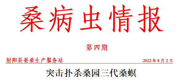 防治時間:在8月3日至8月9日之間對桑園及桑苗圃地全面用藥防治一遍,大蠶用葉桑園治蟲可適當推后進行。特別提醒:小蠶用葉桑園治蟲期在3-5日防治結束。