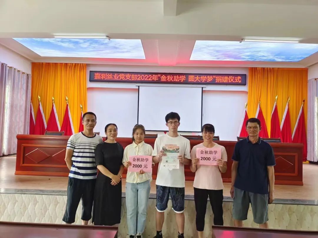 廣西中絲成絲綢科技有限公司為今年考上高等院校的員工子女發(fā)放金秋助學金