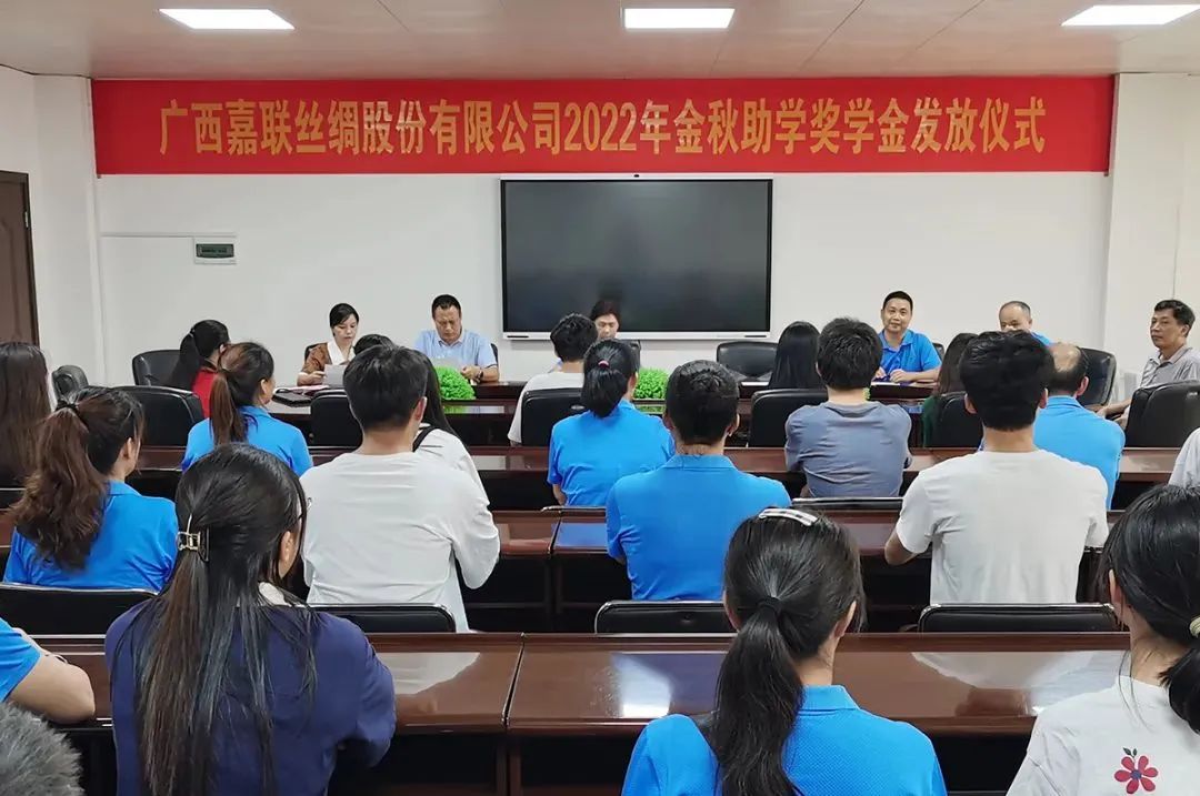 8月26日,廣西嘉聯(lián)絲綢股份有限公司舉行2022年金秋助學獎學金發(fā)放儀式,今年第一批共有19名嘉聯(lián)員工子女被高等院校錄取獲得公司獎學金資助。