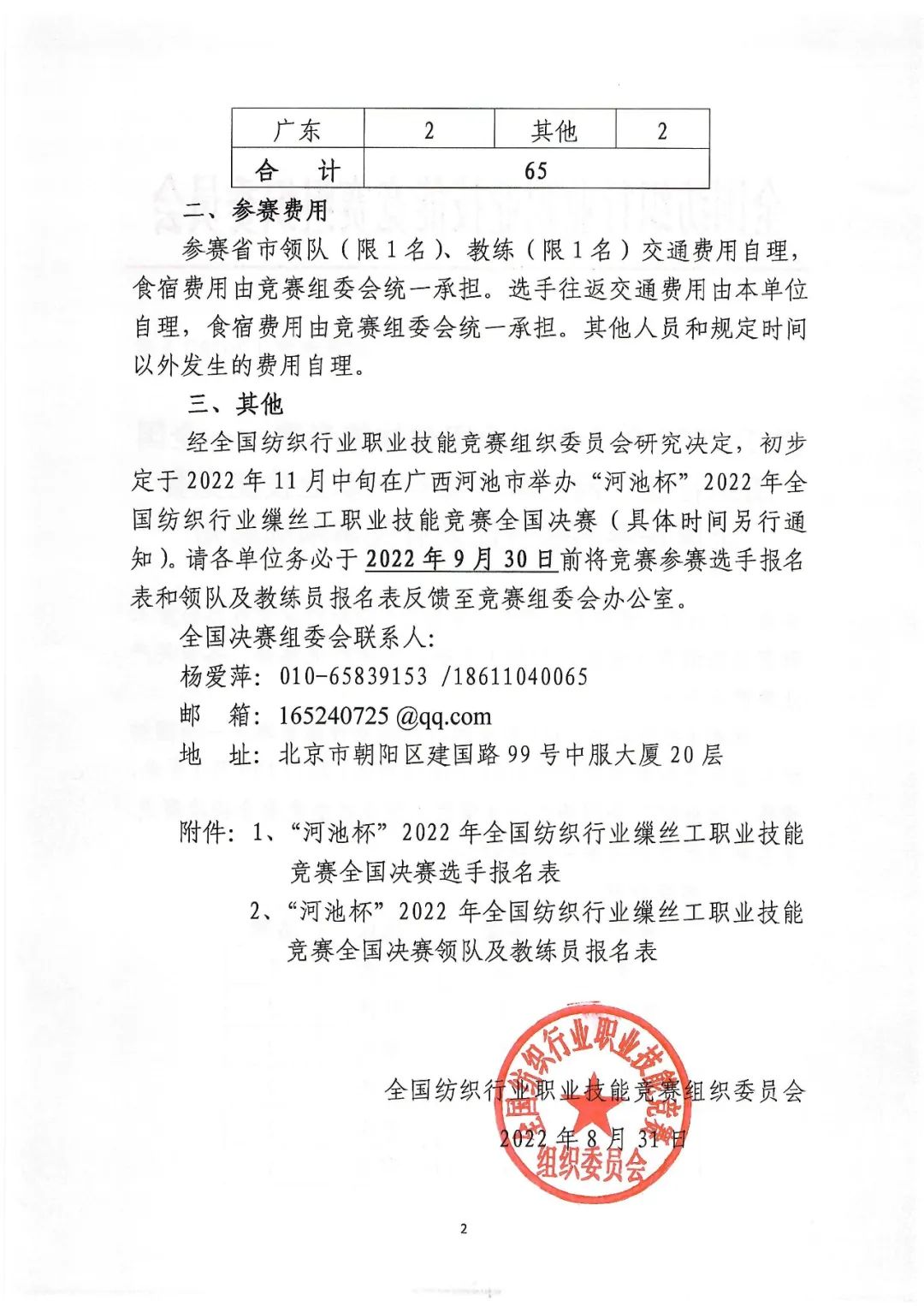 行業(yè)通知丨關(guān)于2022年全國行業(yè)職業(yè)技能競賽——全國紡織行業(yè)“河池杯”繅絲工職業(yè)技能競賽全國決賽名額分配及有關(guān)事項的通知