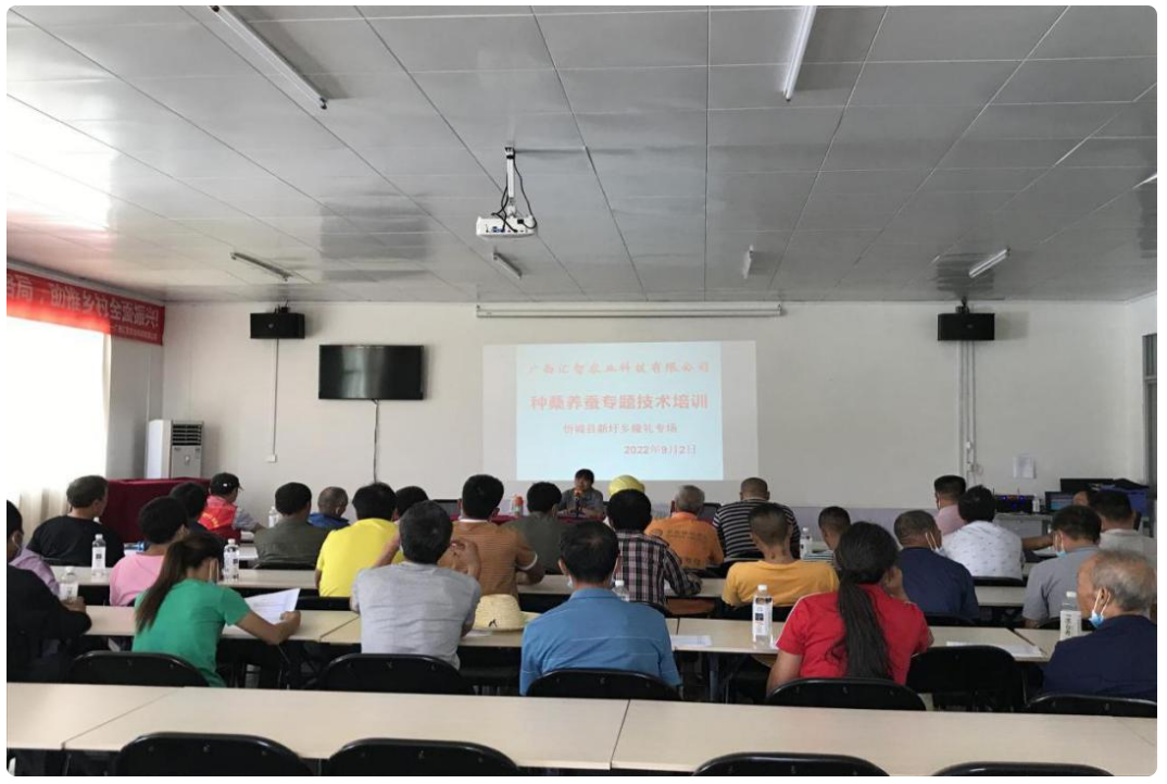 培訓(xùn)會(huì)邀請(qǐng)了廣西匯智農(nóng)業(yè)科技有限公司來為隆禮村蠶農(nóng)開展蠶桑養(yǎng)殖技術(shù)規(guī)范化、提品質(zhì)培訓(xùn)。