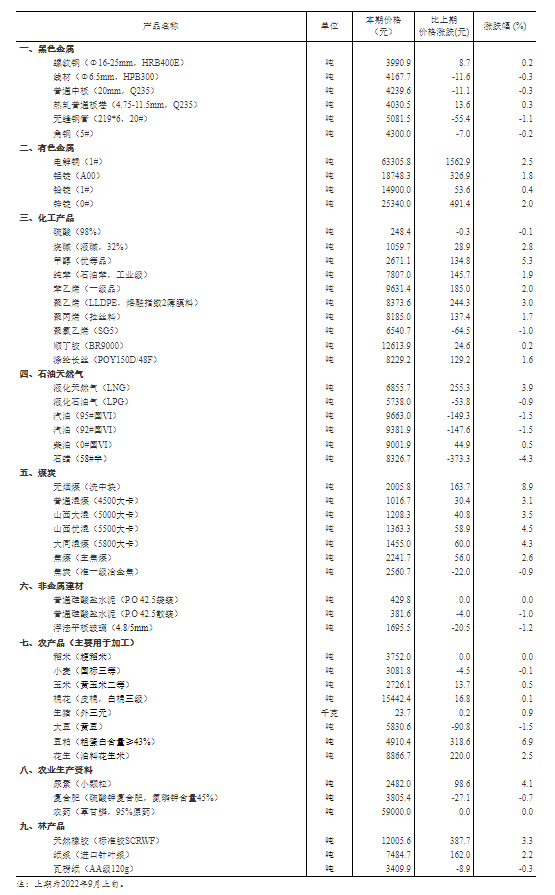 2022年9月中旬流通領(lǐng)域重要生產(chǎn)資料市場(chǎng)價(jià)格變動(dòng)情況
