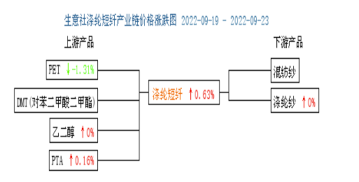 本周國際原油期貨價格主要受美聯(lián)儲繼續(xù)激進加息政策的影響震蕩大跌,美油主力本周大跌6.60%周收盤收于79.38美元每桶。近期PTA開工率處于高位,庫存處于較高水平,下游需求雖所有改善但整體仍然偏弱,油價大跌成本端也拖累PTA,PTA期貨價格走低。乙二醇本周開工率回升不過整體維持低位,下游需求不溫不火,油價大跌拖累,乙二醇期貨走弱。三房巷短纖裝置檢修完畢準(zhǔn)備重啟,短纖整體負(fù)荷預(yù)期上升,下游紗廠織造廠近期開工變化不大,對短纖需求保持低位,受上游原料走弱影響,本周短纖期貨行情走勢較弱。