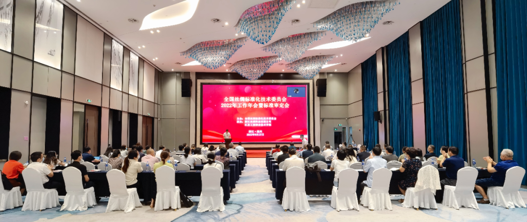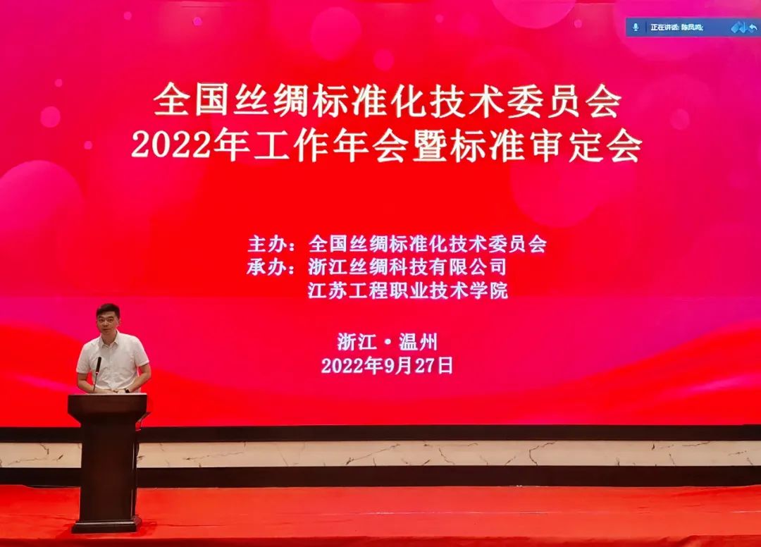 9月27日,全國絲綢標(biāo)準(zhǔn)化技術(shù)委員會(以下簡稱“全國絲綢標(biāo)委會”)2022年工作年會暨標(biāo)準(zhǔn)審定會于浙江溫州召開。中國絲綢協(xié)會黨支部書記兼監(jiān)事長、全國絲綢標(biāo)委會主任委員、中國絲綢協(xié)會團(tuán)體標(biāo)準(zhǔn)化技術(shù)委員會(以下簡稱“中絲協(xié)團(tuán)標(biāo)委”)主任委員錢有清,中國絲綢協(xié)會副秘書長楊愛萍,全國絲綢標(biāo)委會副主任委員孫錦華,全國絲綢標(biāo)委會顧問周穎等領(lǐng)導(dǎo)和嘉賓出席會議。會議采取線上與線下結(jié)合形式召開,來自絲綢企業(yè)、檢驗(yàn)機(jī)構(gòu)、行業(yè)協(xié)會、高等院校、科研院所等單位的委員、觀察員和參會代表近八十人在現(xiàn)場、二十余人線上參會。全國絲綢標(biāo)委會秘書處承擔(dān)單位浙江絲綢科技有限公司常務(wù)副總經(jīng)理李鵬主持會議。