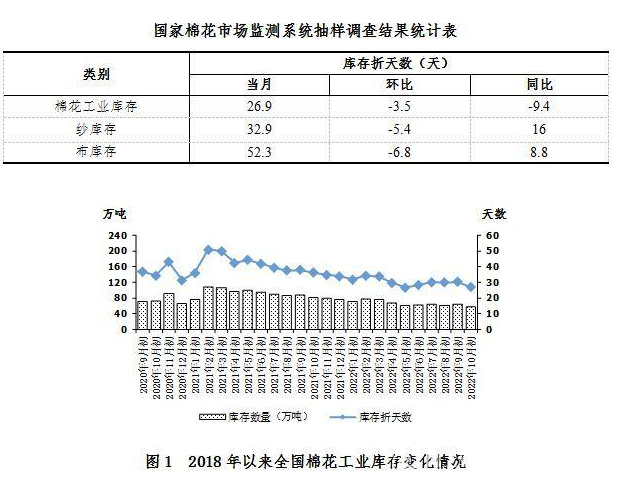 一、10月初全國(guó)棉花工業(yè)庫(kù)存使用天數(shù)約26.9天