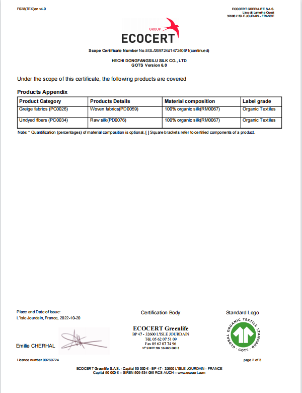 恒業(yè)集團東方絲路絲綢有限責任公司通過GOTS有機認證