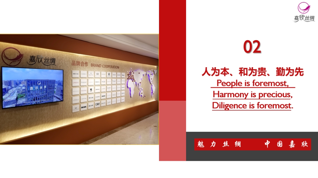 旨在建立具有開(kāi)放性、兼容性、持久性的共同的企業(yè)核心價(jià)值觀,營(yíng)造一種良好穩(wěn)定的企業(yè)氛圍,促進(jìn)當(dāng)?shù)貑T工對(duì)嘉欣絲綢企業(yè)經(jīng)營(yíng)理念及習(xí)慣的理解,提高團(tuán)隊(duì)協(xié)作精神與公司凝聚力;