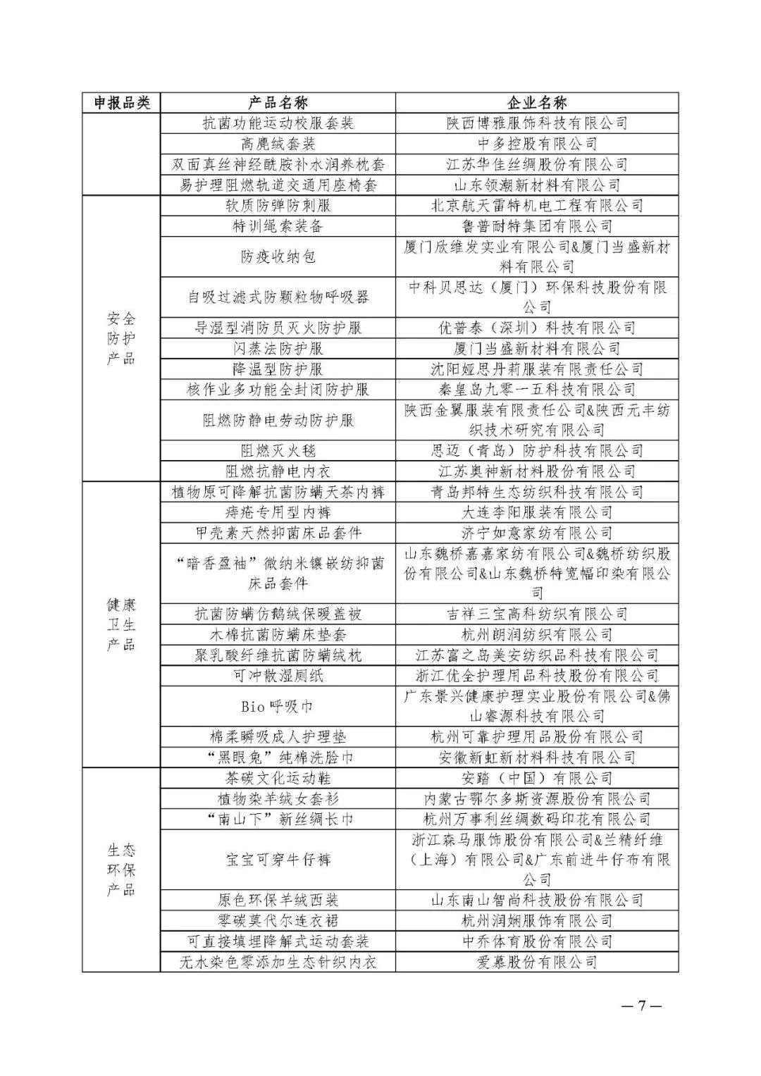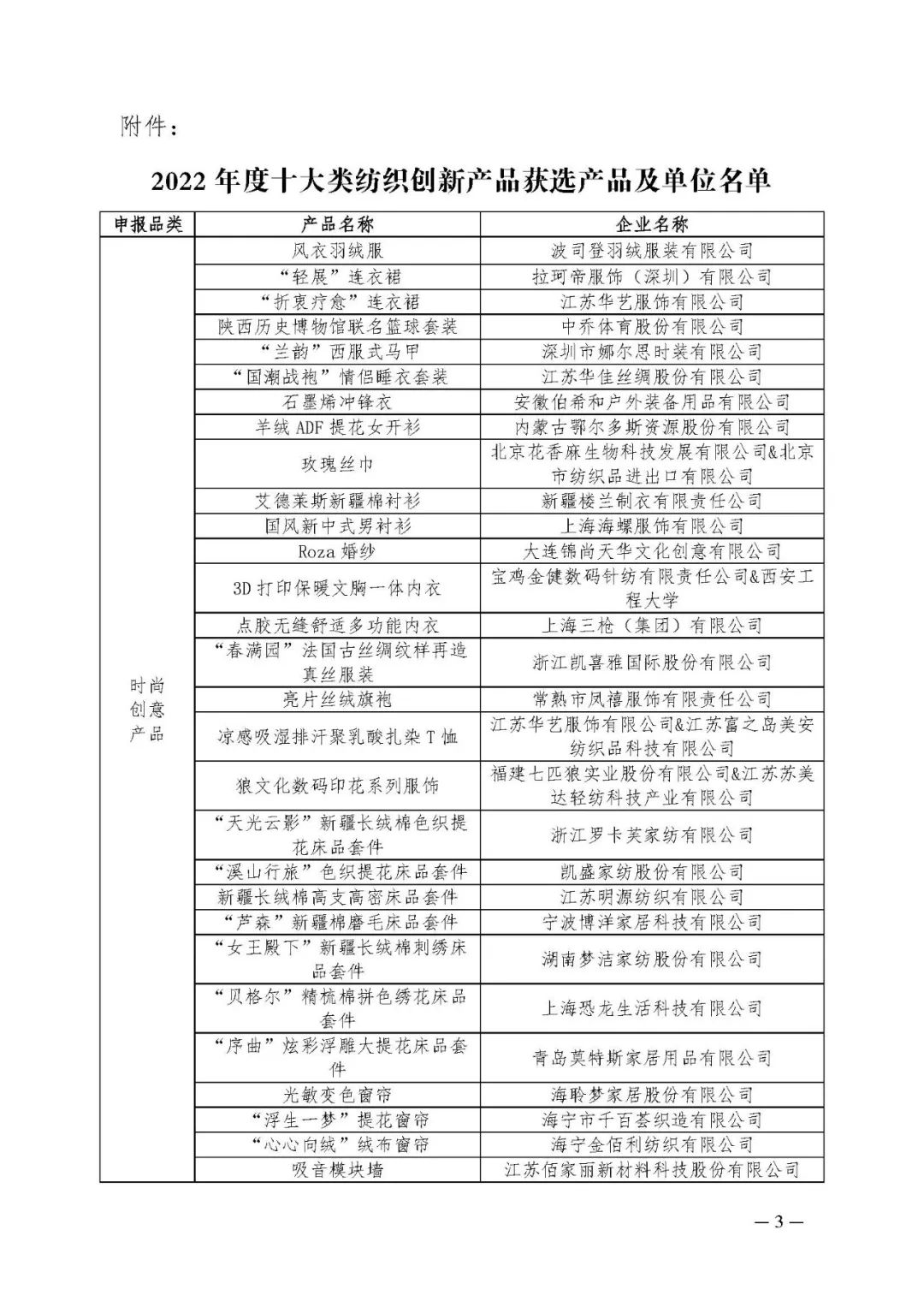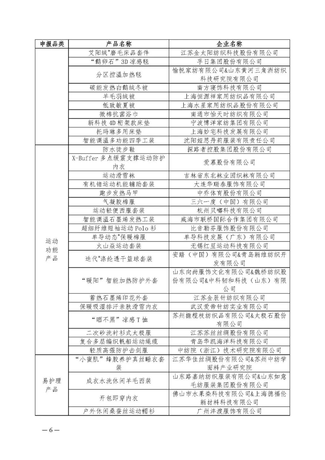 附件:2022 年度十大類紡織創(chuàng)新產品獲選產品及單位名單