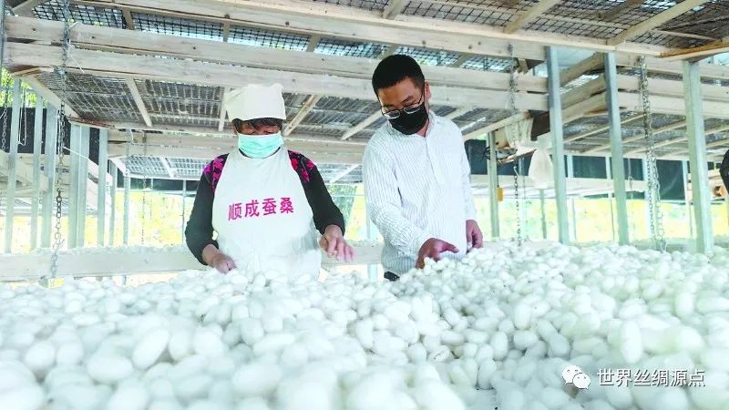 “今年晚秋蠶飼養(yǎng)期間,氣溫適宜,蠶病總體較少,這一茬的晚秋繭單產(chǎn)高、蠶層厚。蠶繭收完之后我們將進(jìn)行蠶房消毒、冬管等工作?!表槼杉Z?;刎?fù)責(zé)人羅瑞聰介紹,5月到11月是基地蠶繭的豐收時(shí)節(jié)。2021年,該基地栽種了1200畝桑樹(shù),飼養(yǎng)了100張蠶,共產(chǎn)繭4000余公斤。今年以來(lái),在精細(xì)管護(hù)下,該基地蠶繭產(chǎn)量有了進(jìn)一步提升,共產(chǎn)出蠶繭5000余公斤,目前已全部售出。蠶桑產(chǎn)業(yè)的發(fā)展,解決了部分困難群眾和村民的就業(yè)問(wèn)題,還輻射帶動(dòng)周邊村發(fā)展種桑養(yǎng)蠶等產(chǎn)業(yè)。