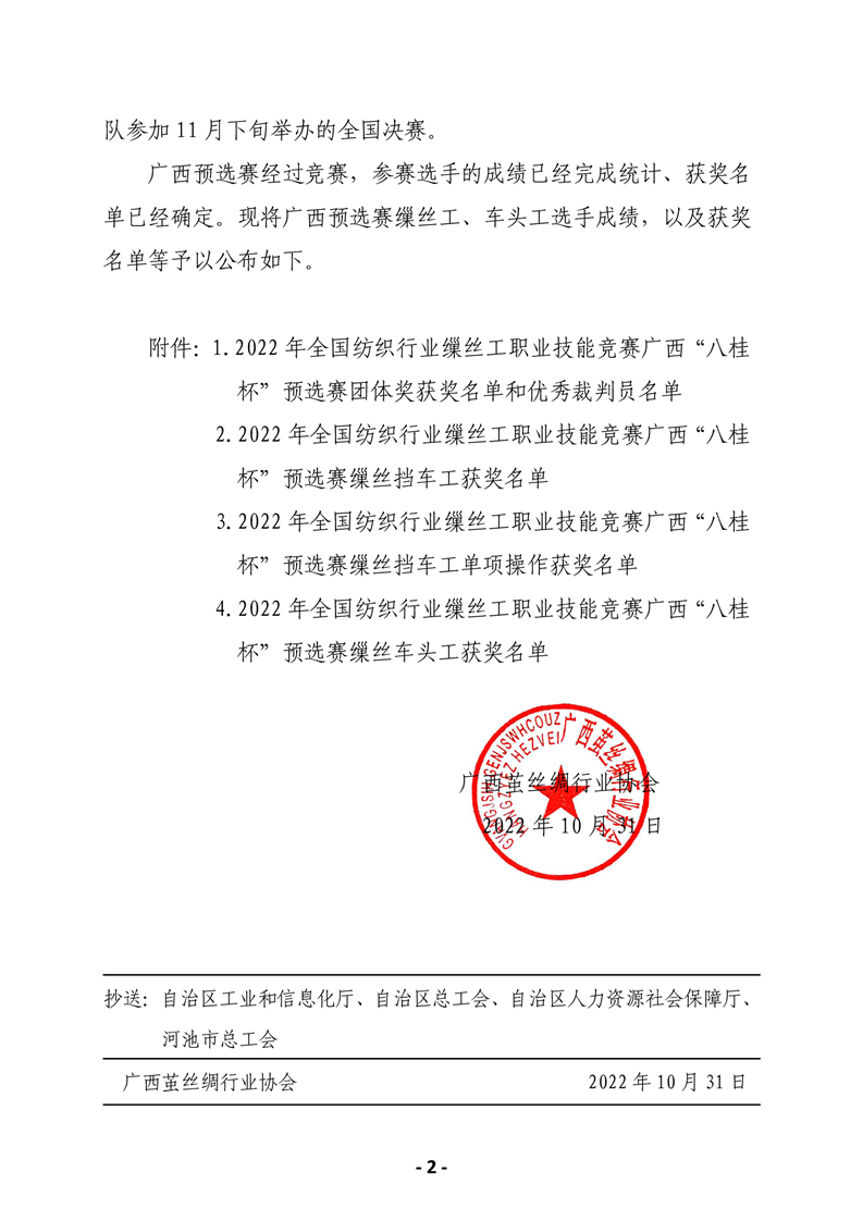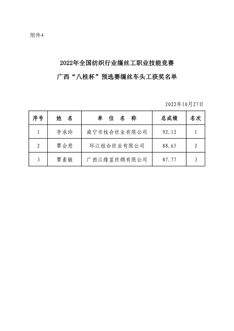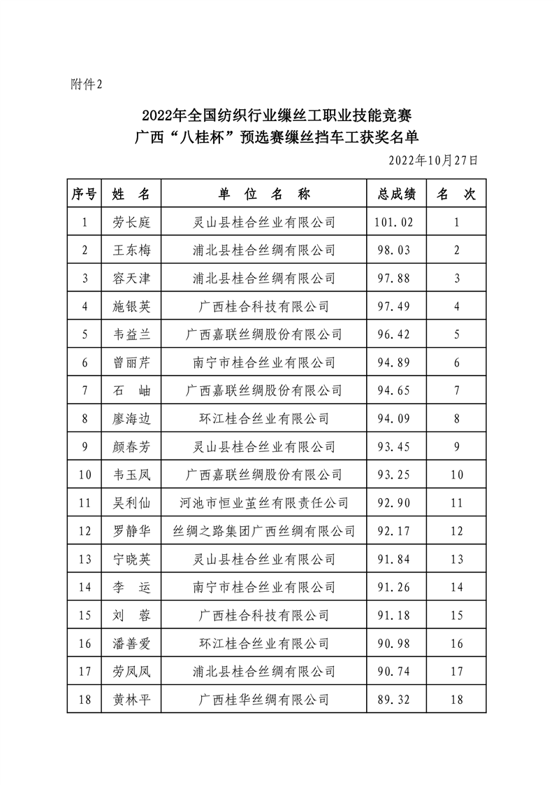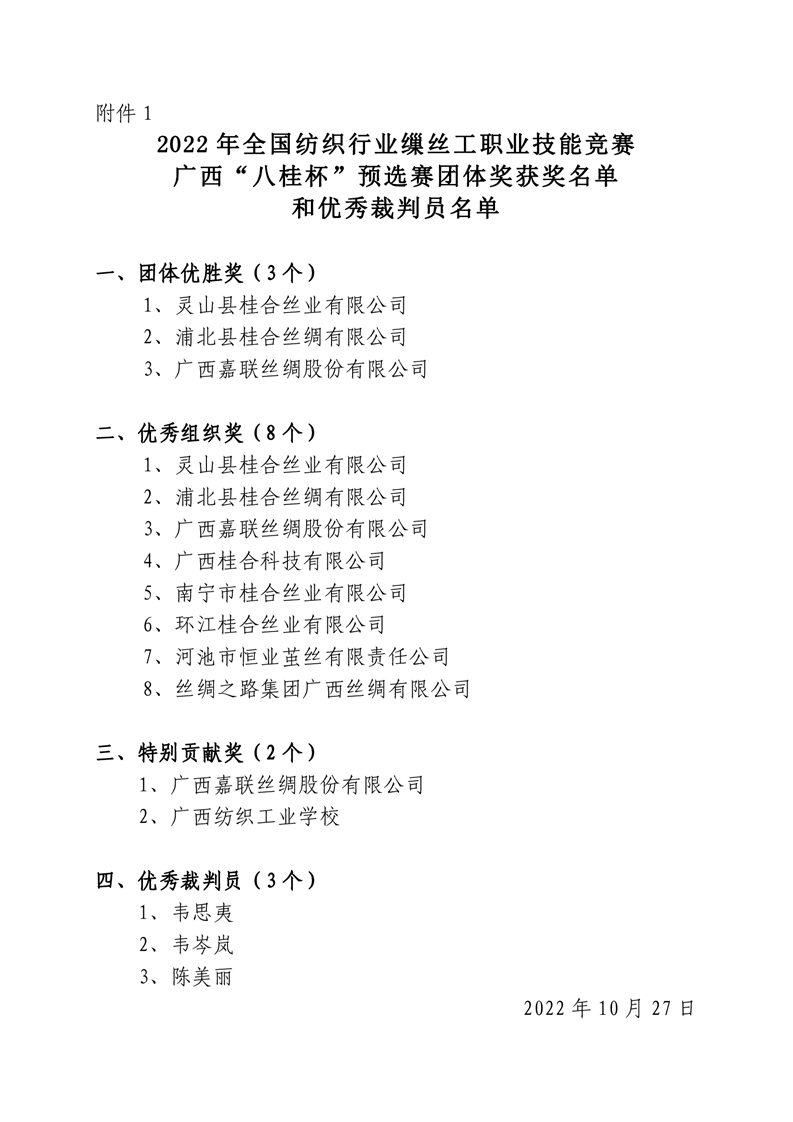 行業(yè)新聞丨關(guān)于公布2022年全國紡織行業(yè)繅絲工職業(yè)技能競賽廣西“八桂杯”預(yù)選賽獲獎名單的通知