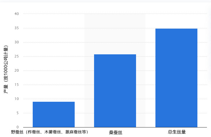 2022財(cái)年,印度絲類生產(chǎn)中,桑蠶絲(生絲)產(chǎn)量近 2.6 萬公噸,占比最高,其次是野生蠶絲,超過 9 公噸。南部的卡納塔克邦生產(chǎn)量位居首位。