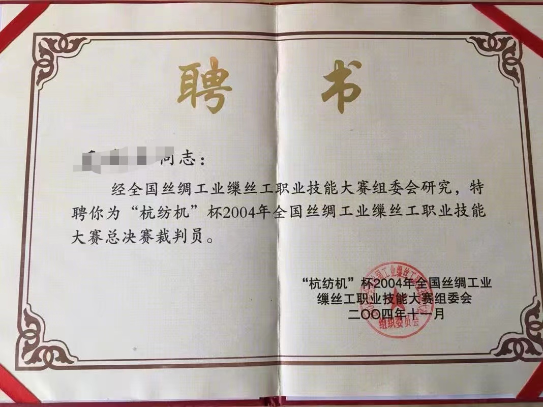 這是2004年在江蘇省海安縣召開的“杭紡機”杯全國絲綢工業(yè)繅絲工職業(yè)技能大賽的當年比賽物品。這些,都還深藏在我們老絲綢人的相冊里,還深藏在我們杭嘉湖繅絲產業(yè)的絲綢人的記憶里。
