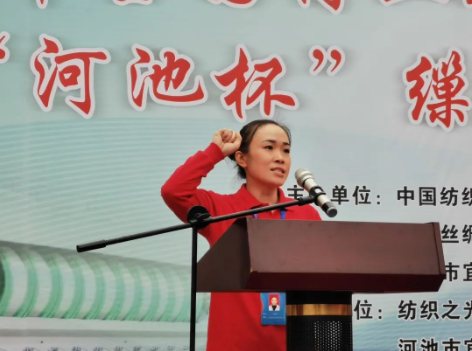11月21日上午,河池市宜州區(qū)的廣西嘉聯(lián)絲綢股份有限公司內(nèi),全國決賽開幕式在嘹亮的國歌聲中拉開序幕。中國絲綢協(xié)會黨支部書記、監(jiān)事長錢有清同志,廣西自治區(qū)財貿(mào)輕紡煙草工會主席律志軍同志,中國紡織工業(yè)聯(lián)合會人力資源部人事處副處長周曉松同志,河池市宜州區(qū)委副書記、區(qū)人民政府區(qū)長戚嘯同志,中國絲綢協(xié)會副會長、廣西繭絲綢行業(yè)協(xié)會會長賴以軍同志,河池市宜州區(qū)委常委、統(tǒng)戰(zhàn)部長、副區(qū)長、政協(xié)黨組副書記樊仲宇同志,河池市宜州區(qū)人大副主任、宜州區(qū)總工會主席覃永龍同志等領(lǐng)導(dǎo)在主席臺就座。來自全國各地的參賽代表、領(lǐng)隊、教練和相關(guān)人員參加了開幕式。