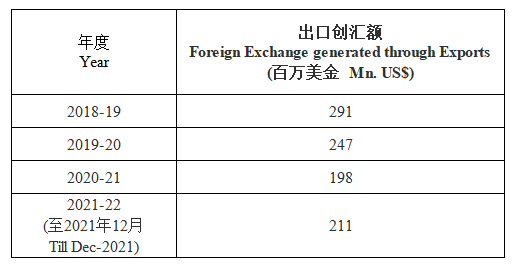 絲綢業(yè)是印度能創(chuàng)造高就業(yè)機(jī)會(huì)的主要產(chǎn)業(yè)之一。但是具體就業(yè)數(shù)據(jù)不會(huì)集中公布。印度絲綢業(yè)在過(guò)去三年和2022年度創(chuàng)造的外匯情況如下: