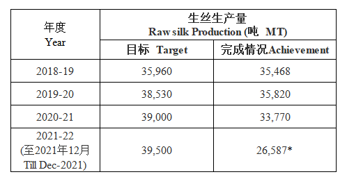 過(guò)去三年和2022年度每年生絲生產(chǎn)目標(biāo)值和完成情況如下: