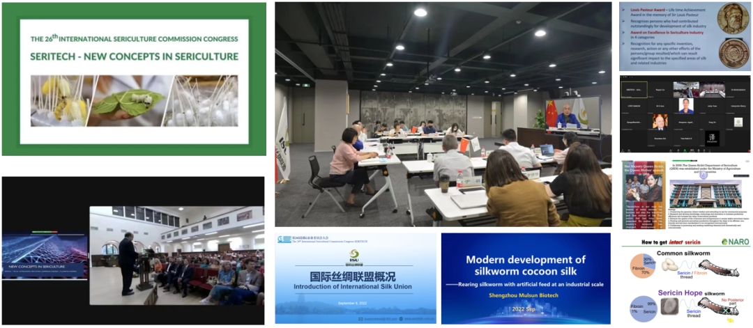2021年,ISU和ISC簽署了合作備忘錄,雙方旨在信息交流與資源共享等方面加強(qiáng)交流。2022年9月8日,ISU支持ISC在羅馬尼亞召開(kāi)了第26屆國(guó)際蠶業(yè)委員會(huì)大會(huì),會(huì)議以“蠶業(yè)科技——種桑養(yǎng)蠶新概念”為主題,共設(shè)置桑樹(shù),桑蠶,非桑蠶,蠶細(xì)菌學(xué),蠶繭后加工技術(shù),蠶業(yè)經(jīng)濟(jì)、營(yíng)銷和管理,絲綢的非紡織應(yīng)用,絲綢加工8個(gè)分會(huì)場(chǎng),邀請(qǐng)了來(lái)自中國(guó)、印度、泰國(guó)、菲律賓、古巴、埃及等國(guó)家和地區(qū)的100余位專家作專題報(bào)告和論文分享,與會(huì)嘉賓就政策支持、發(fā)展規(guī)模、蠶桑品種培育、產(chǎn)業(yè)鏈條、技術(shù)研發(fā)等方面深入交流了各國(guó)蠶桑產(chǎn)業(yè)的發(fā)展態(tài)勢(shì)。ISU成員浙江凱喜雅集團(tuán)、杭州紡織機(jī)械、廣西華虹、嵊州陌桑高科、巴西Bisa Overseas等相關(guān)代表參會(huì)。ISU主席張國(guó)強(qiáng),嵊州陌桑高科研發(fā)經(jīng)理金豐等受邀作主旨報(bào)告。
