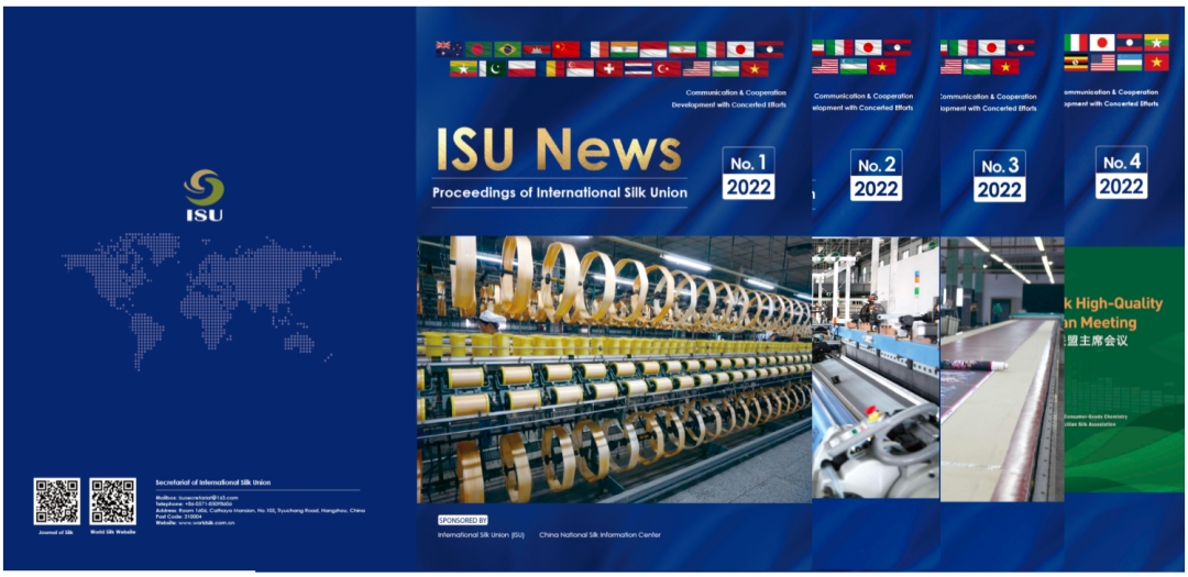 為傳播國(guó)際絲綢產(chǎn)業(yè)資訊,分享絲綢行業(yè)的新理念、新技術(shù)、新成果,2022年,ISU打造了會(huì)刊《ISU NEWS》,這是由國(guó)際絲綢聯(lián)盟和全國(guó)絲綢信息中心共同主辦的行業(yè)性內(nèi)部刊物,旨在以行業(yè)的視角關(guān)注產(chǎn)業(yè)發(fā)展,分享國(guó)際蠶桑絲綢的發(fā)展動(dòng)態(tài),打造國(guó)際絲綢行業(yè)的交流平臺(tái)。2022年,《ISU NEWS》聚焦絲綢高質(zhì)量和可持續(xù)發(fā)展,關(guān)注智能化智造、綠色低碳減排、產(chǎn)業(yè)交叉融合等創(chuàng)新發(fā)展,共分享具有前沿性、科學(xué)性和產(chǎn)業(yè)性的行業(yè)資訊50余篇,為豐富稿源,ISU秘書(shū)處還與國(guó)際蠶業(yè)委員會(huì)、意大利絲綢協(xié)會(huì)等組織建立了持續(xù)的期刊資訊共享合作。