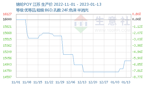 據(jù)生意社價(jià)格監(jiān)測顯示,上周(2023年1月9—13日),錦綸長絲價(jià)格平穩(wěn),截止2023年1月13日,江蘇地區(qū)錦綸長絲DTY(優(yōu)等品;70D/24F)報(bào)價(jià)17220元/噸;錦綸POY(優(yōu)等品;86D/24F)報(bào)價(jià)15000元/噸;錦綸FDY(優(yōu)等品:40D/12F)價(jià)格報(bào)18025元/噸。