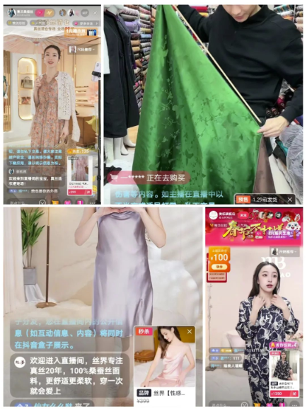 這是今天下午電商平臺上絲綢商品的直播。我們祝福絲綢商品大賣,行業(yè)有好的收成。