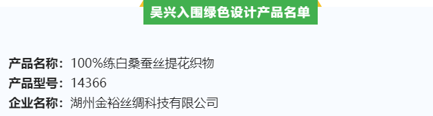 絲企榮譽丨湖州金裕絲綢科技有限公司產(chǎn)品入選綠色設(shè)計產(chǎn)品名單