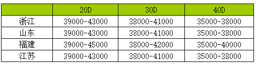 當(dāng)前氨綸市場(chǎng)主流價(jià)格統(tǒng)計(jì)(單位:元/噸)
