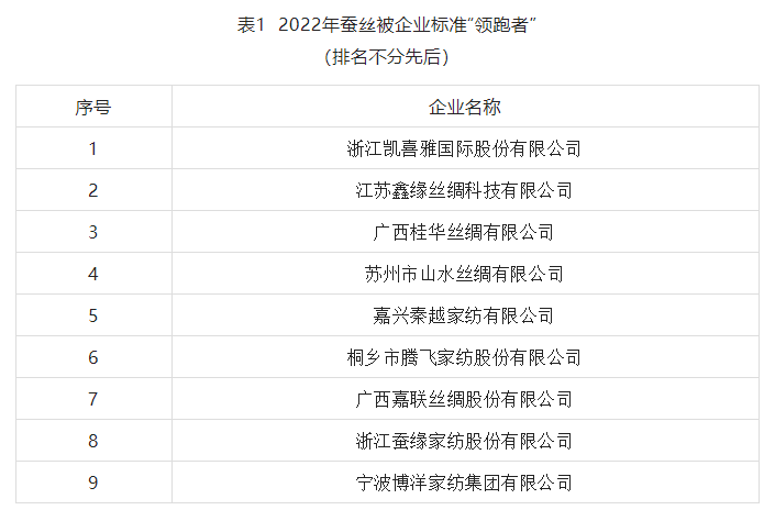 絲企榮譽丨九家企業(yè)獲評為2022年蠶絲被企業(yè)標準“領跑者”