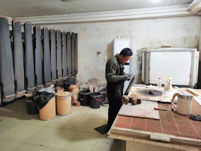 制琴師周留杰正在完成制作古琴的最后工序